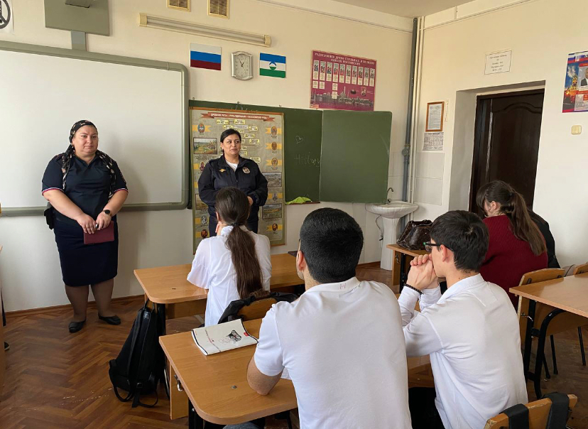 В рамках Всероссийской Акции «День правовой помощи детям» , 20.11.2024 г,в школу был приглашен инспектор ОПДН МО МВД России «Баксанский», капитан полиции Шогенова М.Б., которая провела лекцию с учащимися 9х классов, в количестве 46 детей на тему: «Права и обязанности несовершеннолетних».