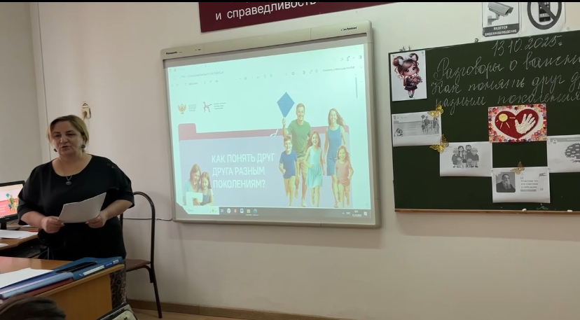 В понедельник, 13 октября, в российских школах состоялся очередной урок из цикла «Разговоры о важном». "Как понять друг друга разным поколениям". Его посвятили семейным ценностям и важности взаимопонимания между представителями разных поколений. Обучающиеся обсудили, что в основе семьи лежат доверие, взаимопонимание и преемственность поколений, а преодолеть семейные конфликты и построить гармоничные отношения возможно благодаря взаимному уважению, диалогу и обмену опытом между молодым и старшим поколениями.